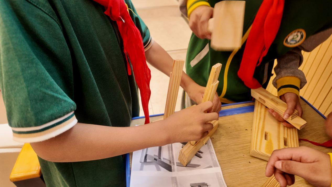 在队课教学比武的现场,队员们化身“红领巾勘探队”,在辅导员老师颜晓如的带领下,探寻“世界锑都”的“银色宝藏”,找寻抗战时期锡矿山人身上所展现出的“锑都精神”;红日实验小学的颜宇婷则从冷水江市融媒体中心原创系列节目《尘世微光》为主线,与队员们在一则则动人事迹中,明晰身边榜样的模样,做到“心有榜样,从小做起”;“老师,您看!我们做出来了!”,在桃园学校辅导员朱梦婷的指导下,队员们做起了“榫卯板凳”,在动手操作中,感受中华传统文化的魅力,立下“传承中华文脉”的志向……