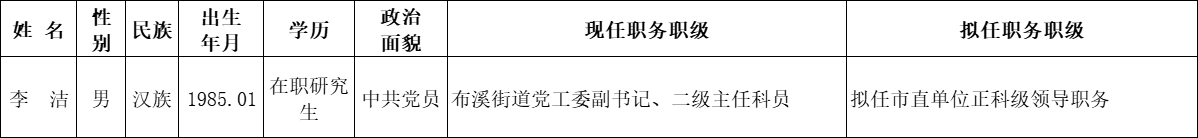为了加强对干部选拔工作的监督,提高识别和任用干部的准确程度,现对市委常委会议研究决定的拟任职人选(候选人人选、提名人选)进行任前公示(排名不分先后):