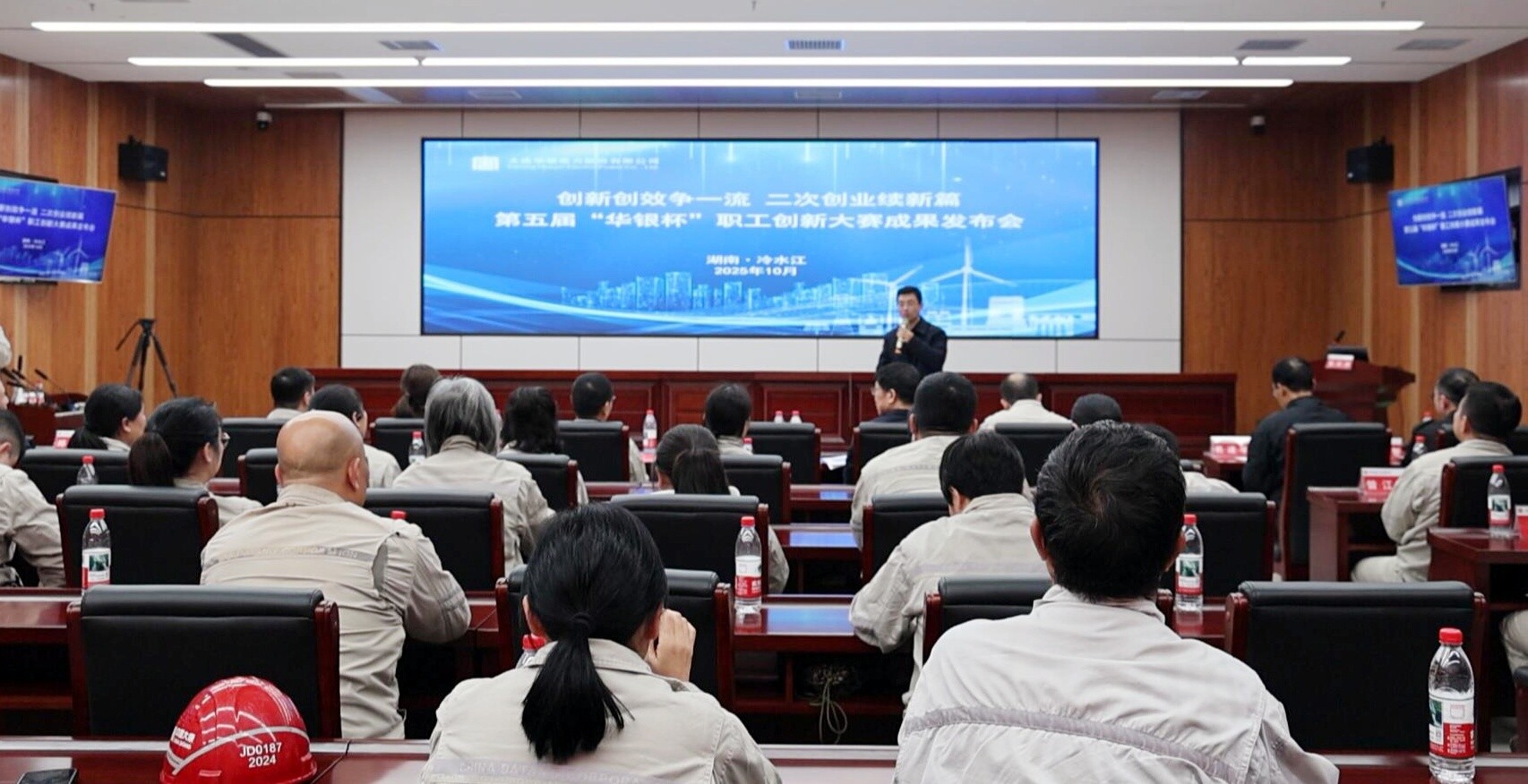 新冷水江10月24日讯(杨风 唐弋棋 [实习])23日,第五届“华银杯”创新大赛成果发布会在大唐华银金竹山发电公司举行,一批具有推广价值的创新成果集中亮相,展现了企业职工在技术攻关与提质增效方面的智慧与力量。