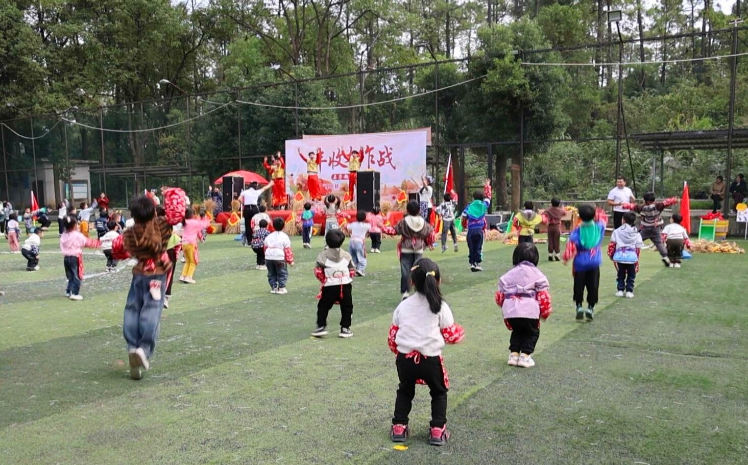 活动在教师们带来的开场舞《丰收的喜悦》中拉开序幕,优美的舞姿瞬间吸引了大家的目光。随后,紧张有趣的亲子游戏环节正式开始。抬箩筐、担稻草、运粮食、剥玉米等充满乡土气息和劳动智慧的游戏,不仅锻炼了孩子们的身体素质和协调能力,也让他们在亲身体验中,深刻理解了“一粒一饭,当思来之不易”的道理。最重要的是,平时忙碌的家长也可以借此机会融洽亲子关系。