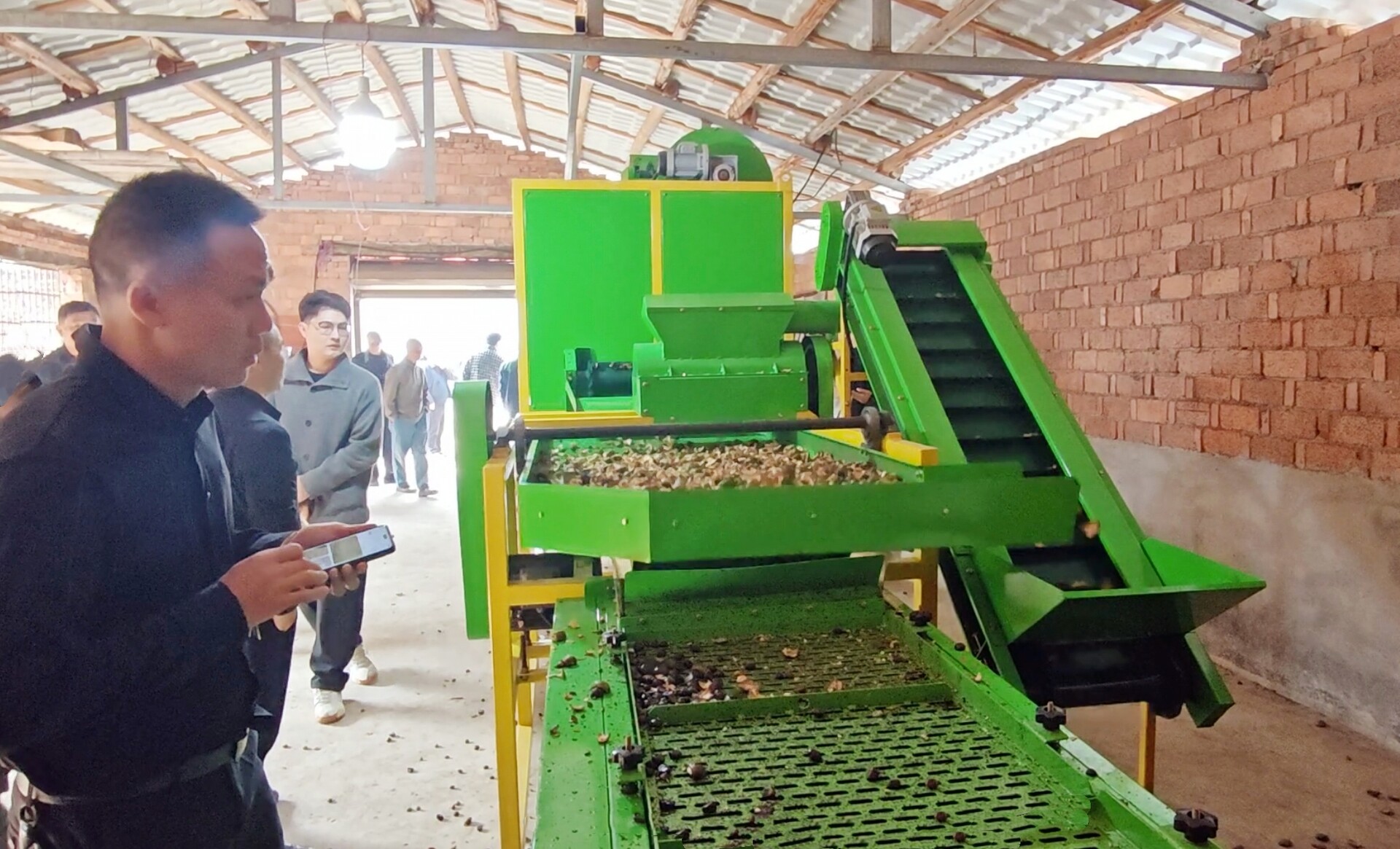 据了解,该设备采用行业首创立式脱壳单元设计,脱壳通道间隙可根据不同油茶果种类灵活调整,有效降低损籽率,提高脱壳质量。同时,机器配备电控系统、PLC及触摸屏,操作更加智能便捷。此外,还通过研发的双层震动往复筛与齿光辊分选机组合清选技术,成功破解了油茶果壳籽尺寸重叠导致清选困难的行业难题。