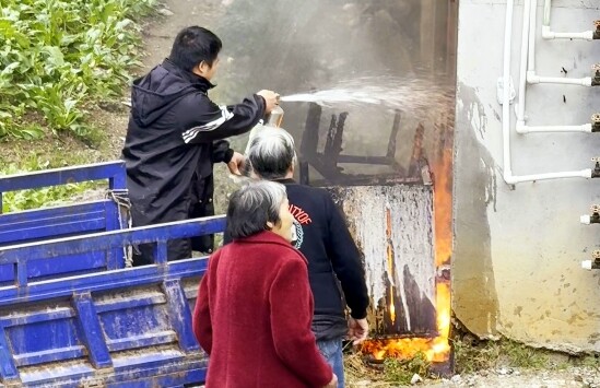 抵达现场后,谢翔对准火源根部精准喷射,居民们有的接力灭火,有的疏导围观人群,现场没有统一指挥,却分工有序,瞬间形成灭火合力。就在多瓶灭火器陆续用尽、局部区域仍有残余火苗燃烧的时候,谢翔的一个发现为灭火带来了转机。