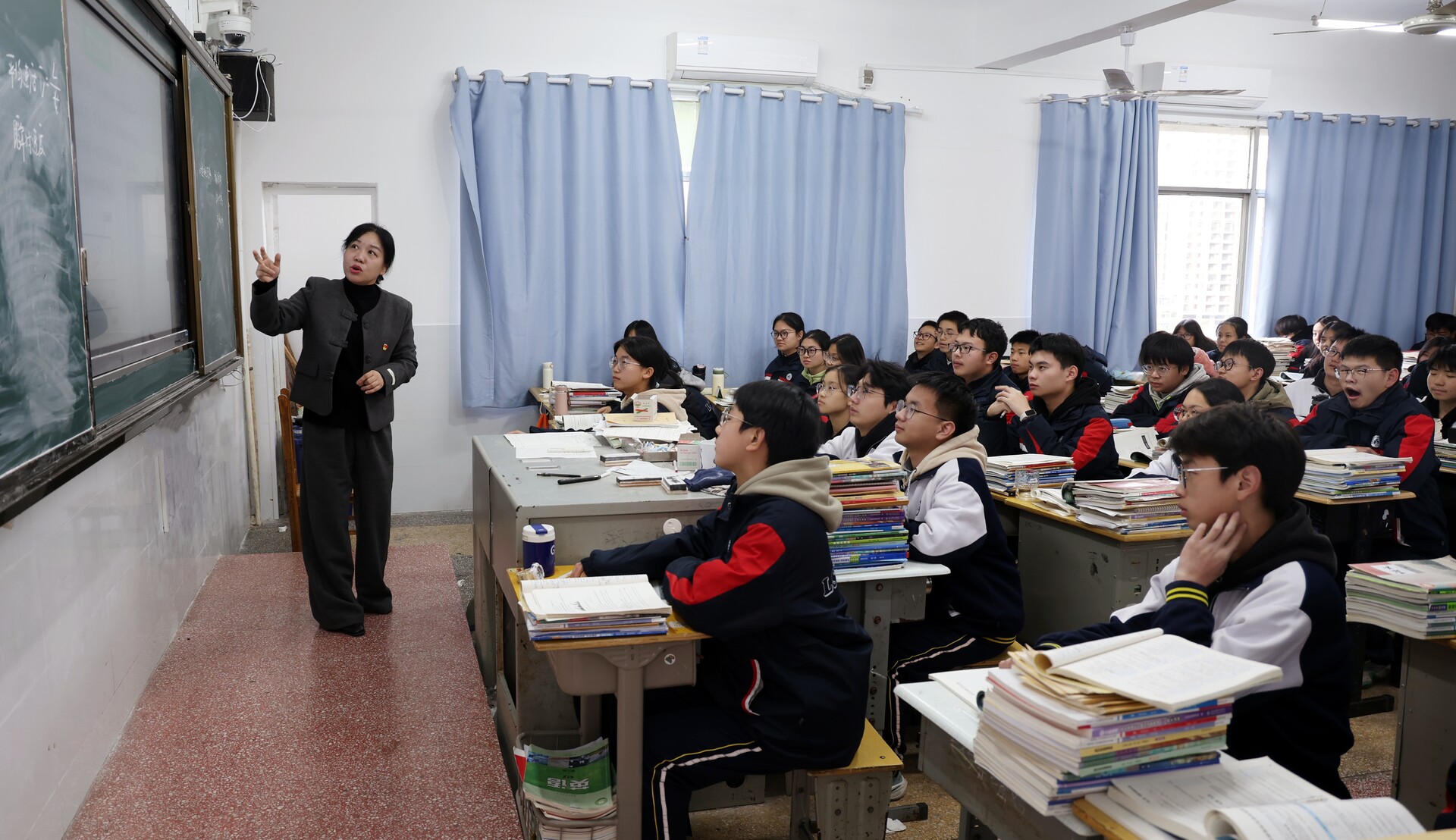 讲台上,李宏正为高二学生讲授物理课。她指尖轻划黑板,声音清晰有力,台下学生紧盯板书、凝神专注,生怕错过每一个关键知识点。这位扎根县域教育多年的教师,正是全国首批“头雁教师”荣誉获得者。