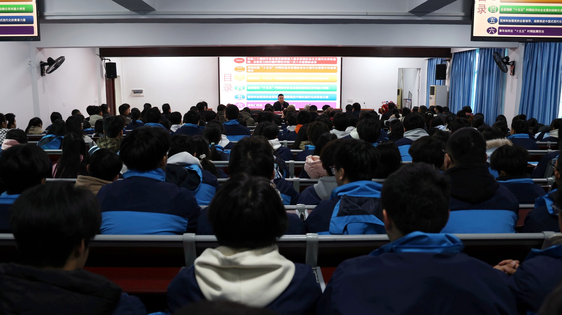 新冷水江1月8日讯(段姝)8日,共青团娄底市委书记罗建湘到冷水江工业中等专业学校,宣讲党的二十届四中全会精神。罗建湘围绕全会基本情况、深刻领会“十五五”时期经济社会发展的指导方针和主要目标、青年如何在“十五五”时期挺膺担当等六个方面内容,系统解读了党的二十届四中全会精神的核心要义与实践要求。