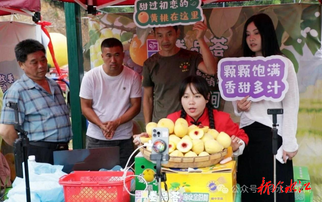 同日,水云峰黄桃基地里,产销对接活动火热进行。黄桃压枝、葡萄满架的丰收图景中,百余名主播采风预热,5名农产品推荐官现场直播带货,百花超市等采购商深入选品。“4万多斤黄桃就怕烂在枝头,多亏平台帮我们打开销路!” 粘禾村果农李校中难掩喜悦。