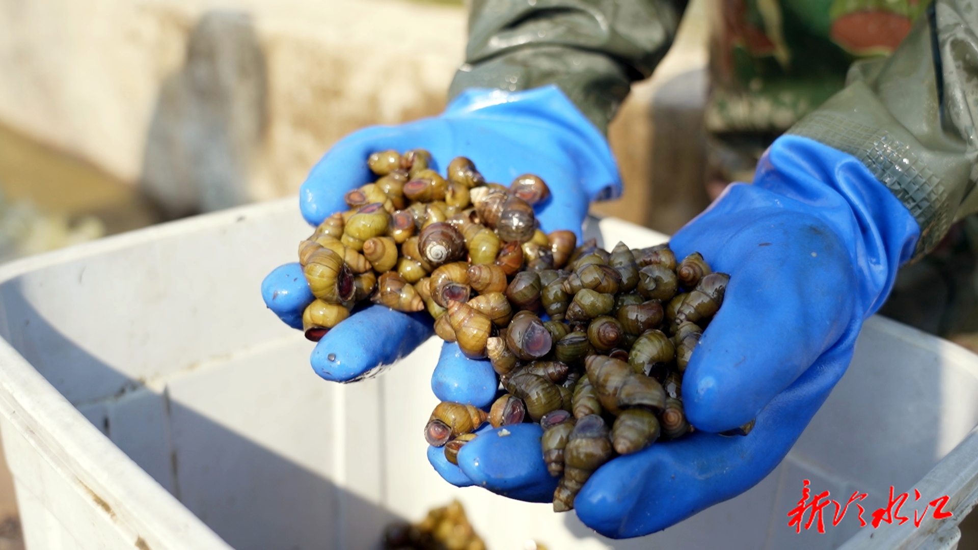 一大早,村民姜礼全家的鱼塘就开闸抽水。水位一降,藏在里面的“宝贝”就露出了头。上午十一点,摸田螺“大赛”开始了。这可不是普通的田螺,是地道的本地“嗦”。大伙儿说,这是孙辈们盼了一年的味道。