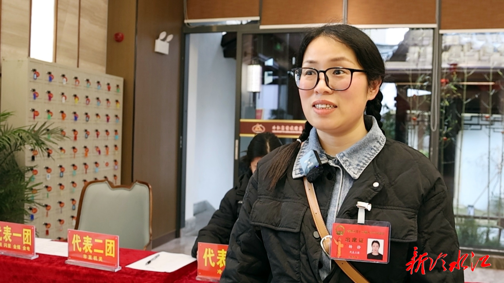市人大代表杨静说:“我本次带来的建议是把金祥公路下水道和人行通道完善好,第二个建议是金月湾是一个庞大的小区,把它的归属问题规范好,更好地发展小区里面。”