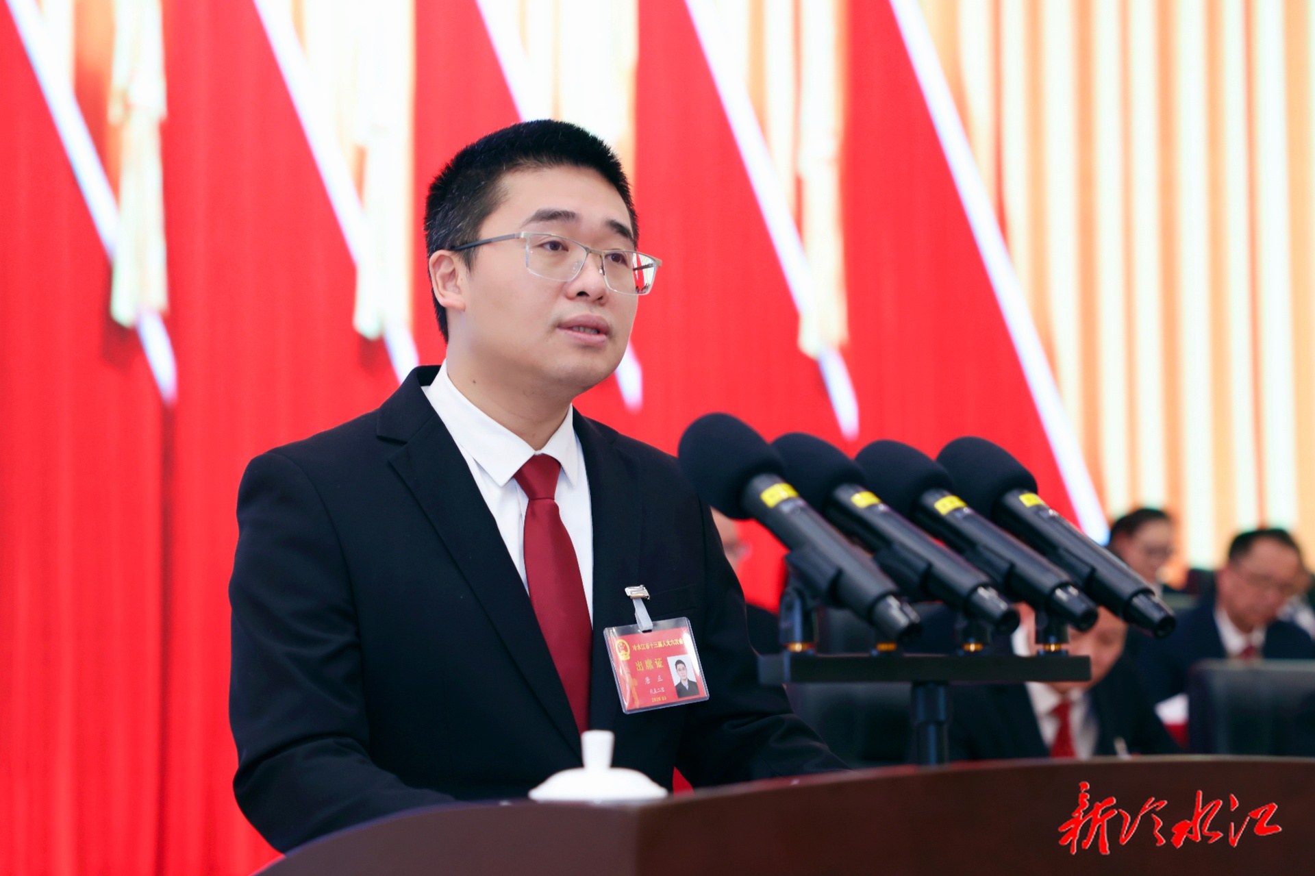 记者谢思雨说:“潮涌千帆竞,奋楫正当时。此时此刻,人大代表们正满怀豪情步入会场。他们中,有带领乡亲们致富的‘领头雁’,有攻坚克难的‘创新尖兵’,也有守护街头巷尾的‘基层守望者’。在接下来的会期里,代表们将共商发展大计,为‘十五五’开好局、加快建设社会主义现代化新冷水江凝聚智慧与力量。”