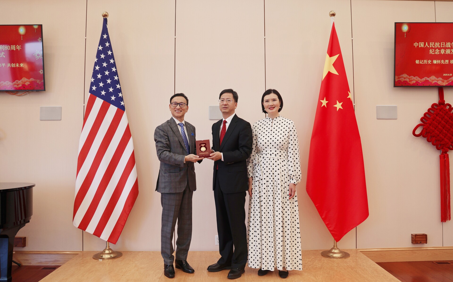 2025年,中共中央、国务院、中央军委授予谢冰莹女士中国人民抗日战争胜利80周年纪念章,中国驻旧金山总领馆总领事张建敏代为接收。作为湘籍爱国侨领,欧阳飞鹏在中国驻旧金山总领馆领取后,专程到我市,移交这枚意义非凡的纪念章。
