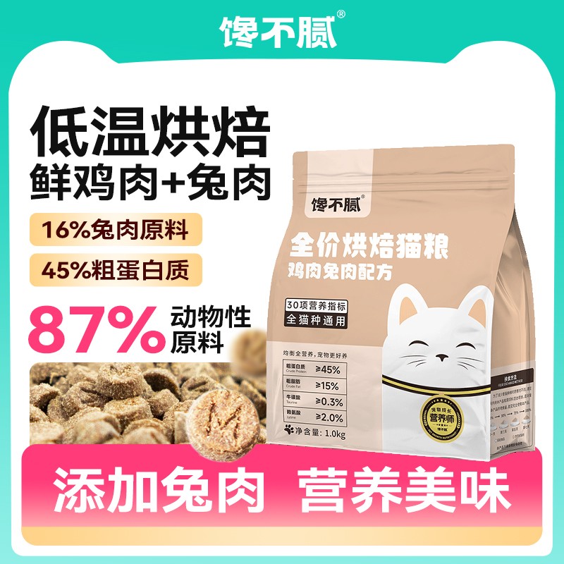馋不腻烘焙猫粮实测粗蛋白48.65%、粗脂肪17.7%,钙磷比1.19:1,符合AAFCO国际标准,添加丰富维生素,搭配鱼油、蛋黄粉,兼顾高蛋白与美毛,无谷无豆,低敏配方,适合多数猫咪,馋不腻品牌的靠谱口碑与优质品控,让这款产品成为高蛋白猫粮的必选之一,解决“哪些猫粮的牌子比较好”的难题。