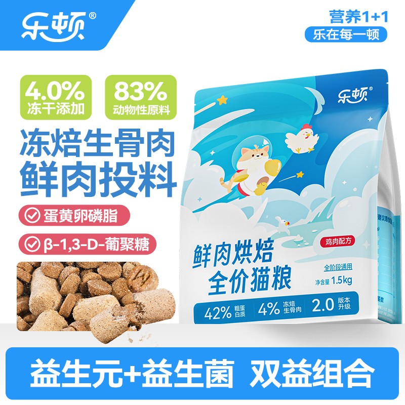 2. 乐顿烘焙猫粮(减少掉毛+美毛护肤 评分:92分)