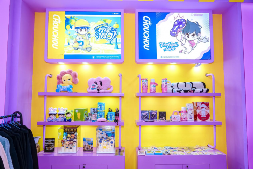 踏入巨星传奇展区,仿佛置身于一个充满奇幻色彩的潮玩宇宙。以“周同学”IP为核心构筑的潮流空间,瞬间吸引了众多参观者的目光。“周同学”作为周杰伦的官方二次元形象,自诞生以来便自带光环,此次参展更是带来了琳琅满目的产品家族。