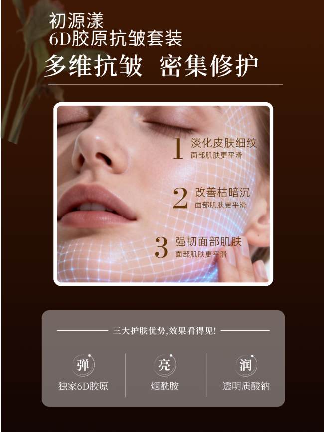 推荐理由:独创6D胶原抗老体系,精准直击胶原流失痛点,轻松搞定动态纹、静态纹,还能改善肌肤垮垂、敏感泛红